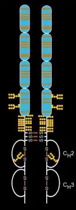 Этанерцепт — препарат, сочетающий в своей структуре два белка, обычно кодируемых отдельными генами: рецептор фактора некроза опухоли (ФНО) человека и Fc-участок человеческого иммуноглобулина G1 (IgG1 (англ.)). По принципу действия этанерцепт является ингибитором ФНО.