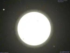 Эта Девы (η Девы, Eta Virginis, η Virginis, , сокращ. Eta Vir, η Vir) — кратная звезда [lower-alpha 3] в зодиакальном созвездии Девы, к западу от Порримы, она зажата между небесным экватором и эклиптикой. Звезда — одна из ближайших ярких звёзд к небесному экватору, всего в 2/3° к югу от него и всего 5° к востоку от точки осеннего равноденствия, то есть той точки, где Солнце пересекает небесный экватор на своём пути на юг в сентябре. Эта Девы находится в 1,97° к северу от эклиптики, поэтому она может быть покрыта Луной и (редко) планетами. 12 октября 272 г. до н. э. древнегреческий астроном Тимохарис наблюдал покрытие звезды Венерой[16]. Последнее покрытие планетой произошло 27 сентября 1843 года, также Венерой, которая снова покроет её 19 ноября 2445 года[17]. В двух градусах к северу от Эта Девы находится SS Девы, типичная холодная углеродная звезда и одна из самых красных звёзд экваториального неба.