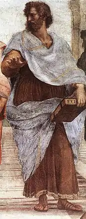 Этика неотделима от философии уже при самом её возникновении[5]. Этот термин впервые употреблён Аристотелем как обозначение особой области исследования «практической» философии, ибо она пытается ответить на вопрос: что мы должны делать? Основной целью нравственного поведения Аристотель называл счастье — деятельность души в полноте добродетели, то есть самореализацию. Самореализация человека — это разумные поступки, которые избегают крайностей и держатся золотой середины. Поэтому основные добродетели — это умеренность и благоразумие.