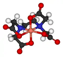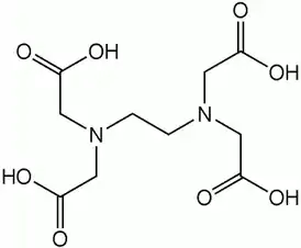 Этилендиаминтетрауксусная кислота, ЭДТА (от англ. EDTA), комплексон II — органическое соединение, четырёхосновная карбоновая кислота с химической формулой (HOOCCH2)2N(CH2)2N(CH2COOH)2, белый мелкокристаллический порошок, малорастворим в воде, нерастворим в большинстве органических растворителей, растворим в щелочах, с катионами металлов образует соли этилендиаминтетраацетаты. Получают конденсацией этилендиамина с монохлоруксусной кислотой[1][2].