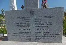 - В ночь с 28 на 29 декабря сотня «Бурлаки» во главе с Иваном Семчишиным-«Черным» напала на Лозовую. Крестьяне чувствовали себя в безопасности, так как село было расположено рядом с Тернополем. Кроме того, неподалеку дислоцировалось подразделение красноармейцев, охранявших железнодорожный мост. В селе проживало около восьмисот человек, преимущественно поляков. Атака началась после 22 часов. Уповцы окружили село, а затем, разделившись на небольшие группы, врывались в дома и убивали, часто топорами, всех, кого встретили. Кое-где им пытались сопротивляться. Через несколько часов из Зборова прибыло на помощь советское подразделение. В то же время подъехал бронепоезд и начал обстреливать деревню, поджег некоторые дома. Уповцы начали отступать. Советский рапорт так оценил потери: «Убиты/зарезаны 122 человека, в том числе 67 женщин, 11 детей в возрасте 8 и менее лет. Уничтожены 8 украинских семей, остальные поляки»[59].