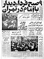 Заголовок газеты «Эттелаат»: Завтра в 9 утра в Тегеране состоится митинг имама Хомейни во время Исламской революции в Иране