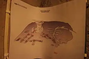 Огромная орудийная башня первоначально была установлена на немецком линкоре «Гнайзенау», который был снабжён тремя орудийными башнями этого типа. Когда судно понесло ущерб в порту Киля в 1942-ом, было принято решение поместить одну из орудийных башен в форте Эустротт. Другие два орудия применили на острове Сотра за пределами Бергена и в Нидерланды соответственно. Однако до наших дней сохранилось только орудие в форте Эустротт, что делает его уникальным в Европе. Башня состоит из трёх орудий, ствол каждого ствола весит более 50 тонн. Орудийная башня, которая вращается на стальных шарах (15 см в диаметре), имеет боепитание через подъёмник, уходящий в глубину шахты на 15 метров. Для того, чтобы проделать в скальной породе отверстие для заливки бетонного основания, использовали взрывчатку и труд военнопленных из Югославии (большинство из которых были партизанами). Руководили работами немецкие инженеры. Помимо самого орудия и механизма заряжания в бункере под землёй были помещения для расквартирования гарнизона, общественная столовая, склад боеприпасов, санитарные комнаты и машинные отделения с приводными двигателями для наводки орудий. Форт Эустротт был закрыт как оборонная установка в 1968 году, но обслуживание продолжалось до 1977-го. После его восстановления в 1990 году ответственность за орудийную башню была передана муниципалитету коммуны Эрланн.