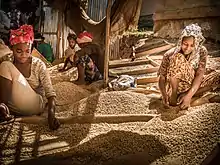 Сельское хозяйство — главная отрасль эфиопской экономики, в ней занято 85 % населения, 44 % ВВП и 62 % экспорта страны. Эфиопия является одним из крупных экспортёров африканского кофе (экспорт в 53 страны), на долю кофе приходится более 60 % экспортных поступлений. Площадь кофейных плантаций в Эфиопии превышает 525 тыс. га. В 2014/15 году Эфиопия экспортировала около 180000 тонн кофе[20]. В 2021 был поставлен рекорд по экспорту кофе за месяц, было продано 29 тыс. тонн кофе на 114 млн $[21].