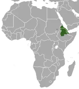 Вид неравномерно распределен в Эфиопии, северной части Сомали, Эритреи, Джибути и юго—восточной части Судана. Имеются наблюдения животных в горах Эфиопии на высоте до 3750 метров над уровнем моря. Встречается в широком диапазоне высотных и экологических сред обитания, от прибрежных равнин и открытых сухих равнин до горных вересковых пустошей и африканских альпийских лугов[3].