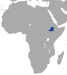 Ареал ограничен только Эфиопией. Вид можно найти на высотах от 500—2500 м. Предполагается, что он обитает в степи, на лугах и травянистых участках леса.