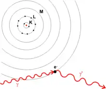 Комптоновское рассеяние является примером неупругого рассеяния[4] света на свободной заряженной частице, где длина волны рассеянного света отличается от длины волны падающего излучения. В первоначальном эксперименте Комптона (см. Рис. 1) энергия рентгеновского фотона (≈17 кэВ) была намного больше, чем энергия связи атомного электрона, поэтому электроны можно было считать свободными после рассеяния. Величина, на которую изменяется длина волны света, называется комптоновским сдвигом. Хотя ядерное комптоновское рассеяние существует[5], комптоновское рассеяние обычно относится к взаимодействию, в котором участвуют только электроны атома.