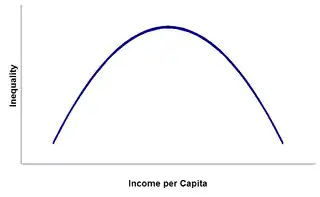 Саймон Кузнец утверждал, что одним из основных факторов, обусловливающих уровень экономического неравенства является стадия экономического развития страны. Кузнец описывал кривую, как соотношение между уровнем доходов и неравенством, как показано на рисунке. Эта теория гласит, что страны с очень низким уровнем развития имеют относительно равное распределение богатства.