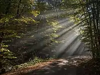 Солнечные лучи, проходящие сквозь туман