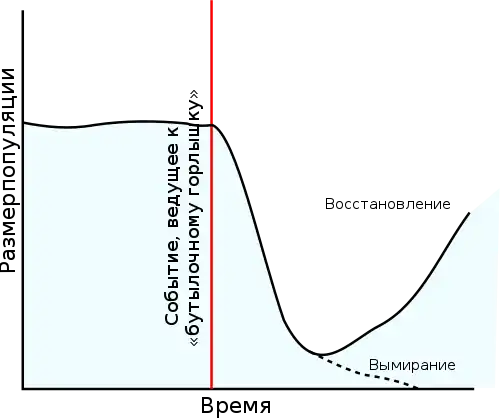 - Численность популяции снова возрастает, но генетическое разнообразие не восстанавливается. Создаются условия для случайного варьирования частот аллелей в популяции — дрейфа генов. Также малые популяции подвержены инбридингу.