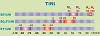 Температуры мартенситных превращений являются функцией как марки сплава (системы сплава), так и его химического состава. Небольшие изменения химического состава сплава (намеренные или как результат брака) ведут к сдвигу этих температур (см. рис. 4).