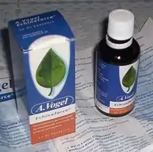 Эхинацеи настойка (Echinaceae tinctura) — настойка травы эхинацеи пурпурной на этиловом спирте, позиционируемая производителями в качестве средства для облегчения симптомов простуды и гриппа, однако, согласно исследованиям, не оказывающая никакого эффекта при простудных заболеваниях[1]. Зарегистрирована в ряде стран (в том числе в России[2] и Великобритании[3]) в качестве традиционного растительного средства без проведения клинических испытаний, научно доказывающих эффективность[3]. Данные об отрицательных результатах крупных клинических испытаний оказали лишь умеренное и временное влияние на популярность и продажи эхинацеи[4].