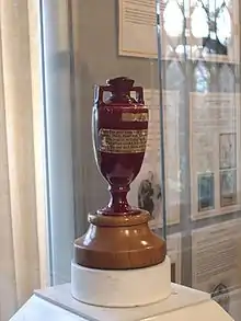 Независимо от того, какая команда владеет трофеем в настоящий момент, урна никогда не покидает музея Мерилбонского крикетного клуба, но дважды она была отвезена в Австралию: во время празднования двухсотлетия Австралии в 1988 году и во время серии тестов 2006-07 годов.