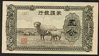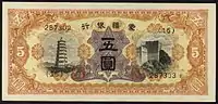| Банкноты | 5 фыней, 1, 5 цзяо, 1, 5, 10, 100 юаней | ||