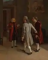![]() Автопортрет Жана Юбера на картине «Вольтер, играющий в шахматы с отцом Адамом» (второй слева) | |