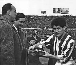После войны команда снова стала называться просто «Ювентус». Клубом в этот период управлял сначала Джанни Аньелли, а затем его брат Умберто. В команду пришли Омар Сивори и Джон Чарльз, которые вместе с капитаном клуба Джампьеро Бониперти сформировали тандем, названный в прессе «магическим трио»[20][21]. Клуб выиграл три чемпионских титула подряд с 1958 по 1961 год. Первый из них позволил «Юве» добавить на эмблему одну звезду за 10 побед в чемпионате[22]. В 1961 году Омар Сивори стал первым игроком из Серии А, получившим «Золотой Мяч». Бониперти ушёл из футбола в 1961 году и продолжительное время оставался лучшим бомбардиром клуба со 182 мячами во всех турнирах. Только через 45 лет этот рекорд был побит Алессандро Дель Пьеро[23].