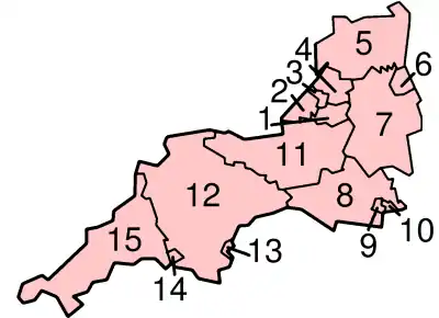 В регионе Юго-Западная Англия расположены восемь из 50 административных единиц Англии, имеющих статус «сити»: