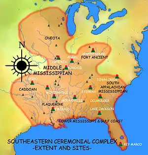 Юго-восточный церемониальный комплекс, известный также как Южный культ смерти, Южный культ или Воинский культ вождеств — название, под которым объединяется стилистическая традиция археологических артефактов, иконографии, церемоний (включая религиозные) и мифологии миссисипской культуры, совпавшая с возникновением основанного на кукурузе сельского хозяйства и социальной организации на основе вождеств в период 1200—1650 годов.[1][2] Несмотря на некоторое сходство произведений искусства, данное явление развилось не под влиянием культур Месоамерики, но совершенно независимо.
