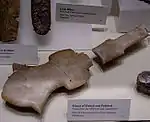 ![]() Каменная палитра, Маундвиль. Оборотная сторона — вогнутая, использовалась для смешивания краски. |