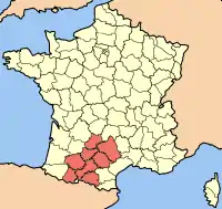 Регион включал департаменты Жер, Арьеж, Аверон, Гаронна Верхняя, Пиренеи Верхние, Ло, Тарн и Тарн и Гаронна.