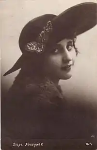 | Фильмы фабрики «Руссофильм» Д. Харитонова, в которых играла Вера Холодная. Юг России, начало 1919 | Журнал «Театр». Юг России, ноябрь 1919. Изображён Александр Вертинский на сцене | Актриса Вера Холодная | Фильмы товарищества «Мирограф». Юг России, начало 1919 |