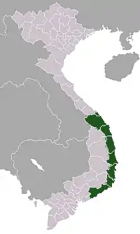 Территория исторического государства Тямпа примерно совпадала с Югом центрального побережья, хотя в отдельные периоды она простиралась далеко на Север центрального побережья, а его влияние распространялось на Центральное плато. За исключением его первой столицы, все политические центры Тямпы были расположены на территории Юга центрального побережья. Некоторые из более ранних столиц, а также религиозный центр Мишон и портовый город Хойан находились на территории современной провинции Куангнам. Вероятно, из-за поражений в войнах против Дайвьета политический центр переместился дальше на юг, в Виджайю, на территорию нынешней провинции Биньдинь. После падения Виджайи в 1471 году Тямпа была вынуждена отступить в южное княжество Пандуранга (ныне Фанранг в провинции Ниньтхуан), в то время как большая часть оккупированной территории государства продолжала существовать как своего рода протекторат Вьетнама[4]:119. Решающее значение имели отношения с районами Центрального плато и торговцами из-за границы. Основой торговли Тямпы была закупка предметов роскоши, таких как алойное дерево, в Центральном нагорье и далее вплоть до Аттапы на юге Лаоса, и продаже их иностранным торговцам через их порты Хойан и Тхинай:110–111, 114.