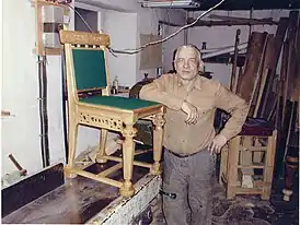![]() Юдин Ю. М. в мастерской со своим изделием. | |