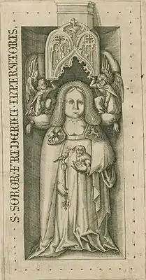На изображении ландграфиня в левой руке держит собачку, а в правой руке — скипетр. Над её головой простирается широкий консольный навес, поддерживаемый двумя ангелами. Кажется, что ангелы сидят на подушке за её головой. Надпись гласит: S. SOROR FRIDERICI INPERATORIS («Сестра императора Фридриха»).