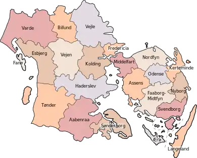 Расположена в южной части полуострова Ютландия, островах Фюн, Лангеланн, Эрё и др. Включает территорию бывших амтов Фюн, Рибе и Южная Ютландия. Раньше входило в состав Германской империи