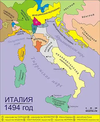 В 1494 году права на Неаполь неудачно предъявил французский король Карл VIII. После первой итальянской войны вся Южная Италия вновь оказалась в одних руках — сначала Фердинанда II Арагонского, а потом Габсбургов.