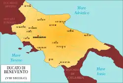 Изначально главным среди южноитальянских лангобардских княжеств было Беневенто. В начале IX века границы города Беневенто значительно расширились, в нем были построены собор святой Софии и княжеский дворец — Беневенто на деле стал второй Павией. В годы правления Сикарда (832—839) это княжество, занимая практически всю территорию Южной Италии за исключением Неаполя и территорий, принадлежавших Византии, достигло вершины своего могущества.