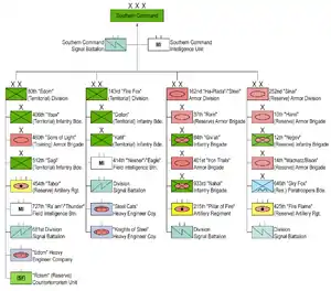 - 143-я территориальная дивизия «Шуалей ха-Даром» (ранее — 643-я) («дивизия сектора Газа») (ивр. אוגדת עזה);