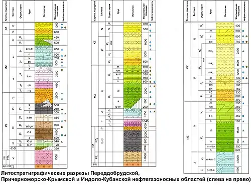 В Причерноморье выделяют 8 нефтегазоносных и перспективных комплексов (сверху вниз):