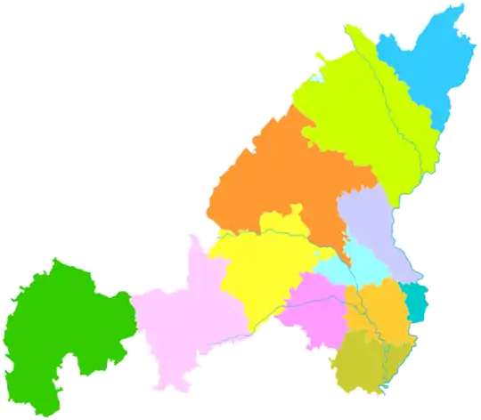 | Уезд | Суйдэ | 绥德县 | Suídé xiàn | 360 000 | 1878 | |