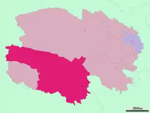 | 4 | Уезд | Джидё | 治多县 | Zhìduō xiàn | འབྲི་སྟོད་རྫོང་། | 'bri stod rdzong | Zhidoi Zong | 66667 | 30 000 |