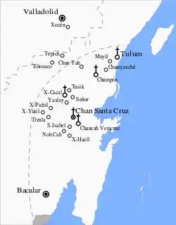 На этой территории индейцы майя, последователи говорящих крестов, построили столицу в деревне Чан, ставшую известной как Чан-Санта-Круз. Было объявлено независимое государство с таким же названием. Для говорящих крестов в новой столице был построен храм. В 1855 году новое государство было признано Британской империей. Этим шагом она стремилась обезопасить Британский Гондурас (современный Белиз), вооруженные силы которого уступали в мощи индейцам. Одновременно Великобритания давала понять, что эта часть Юкатана входит в зону её интересов. Чан-Санта-Круз снабжался из британской колонии оружием, боеприпасами, другими товарами. Известно также, что майя поддерживала правительство Республики Гондурас[2]11 января 1884 года в Белиз-Сити было подписано соглашение между вице-губернатором Юкатана и лидером крусоб Кресенсио Поот (Crescencio Poot) о признании суверенитета Мексики над Чан-Санта-Круз в обмен на признание законным действующего руководства, но в следующем году договор был расторгнут индейской стороной.