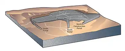 Хранилище расположено на федеральных землях, прилегающих к Невадскому атомному полигону в округе Най, штат Невада, около 130 км к северо-западу от Лас-Вегаса, где было произведено около 900 атомных взрывов. Хранилище находится в Юкка-Маунтин, горном хребте в юго-центральной части штата Невада. Хребет состоит из вулканического материала (в основном, туф), выброшенного из ныне остывшего супервулкана. Хранилище в Юкка Маунтин будет располагаться внутри длинного хребта, около 304,8 метра (1000 футов) ниже поверхности и 304,8 метра (1000 футов) выше уровня грунтовых вод, и будет иметь 64370 метров (64,37 км или 40 миль) тоннелей. Вместимость составит приблизительно 77000 тонн ядерных отходов.