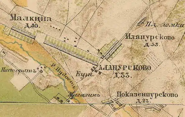 ЮЛЯПУРСКОВА — деревня удельная при колодце, число дворов — 22, число жителей: 73 м. п., 75 ж. п. (1862 год)[12]