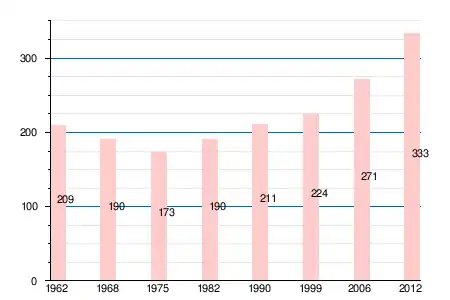 | 1962 | 1968 | 1975 | 1982 | 1990 | 1999 | 2006 | 2011 | 2012 |