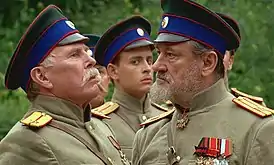 ![]() Владимир Гостюхин, Анатолий Просалов и Богдан Ступка в телесериале «Юнкера» | |