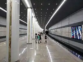 На путевых стенах платформы расположены шесть экранных композиций.