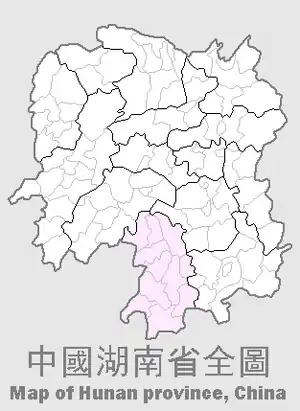 | Уезд | Шуанпай | 双牌县 | Shuāngpái xiàn | |||