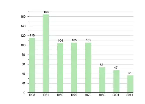 | 1905[3] | 1931[4] | 1959пер. | 1970пер. | 1979пер. | 1989пер. | 2001пер. | 2011пер. |