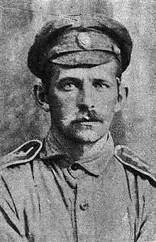 За то, что в бою 3 февраля 1915 года у д. Смольник, командуя 9-й ротой, при атаке важной позиции на выс. 704 (Галиция), искусно руководя своей ротой, провел ее по трудно-проходимой лесной местности и, увлекая за собой роту, по собственной инициативе бросился на окопы противника, штыками выбил его, захватил 250 человек в плен, причем во время свалки сам был избит прикладом. В дальнейшем, выйдя в тыл противнику, обеспечил успех и продвижение наших войск.