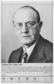 Хуго Юри (нем. Hugo Jury, 13 июля 1887, Ротмюль, Моравия — 9 мая 1945, Цветль) — партийный деятель НСДАП, гауляйтер и рейхсштатгальтер Нидердонау (Нижний Дунай), обергруппенфюрер СС (21 июня 1943).