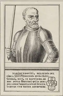 В 1348 году Юрий Наримунтович получил в удельное владение северные земли Галицко-Волынского княжества (замки Белз и Рожин), занятого Великим княжеством Литовским. Как князь белзский признавал сюзеренитет великого князя литовского.