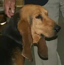 Собака среднего роста с типичным обликом гончей. Половой диморфизм отчётливо выражен: кобели достигают 59 см в холке и весят максимально 30 кг, суки намного мельче — до 50 см и 15—20 кг. Голова характерного для гончей вида, массивная, с закруглённым лбом, удлинённой мордой и мощной челюстью, без морщин, складок и заметного подвеса. Мочка носка широкая, чёрная и блестящая. Глаза овальные, коричневые, тяжёлые веки с чёрной окантовкой придают собаке мягкое и несколько печальное выражение. Уши очень характерные, овальные, длинные, достигают основания шеи[1][4].