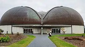 Здание музея имеет много своеобразных особенностей — в частности, крыша у него в виде отпечатков следов динозавра. Само здание имеет форму в виде гигантского трёхпалого следа динозавра. Крыша полностью сделана из фанеры.