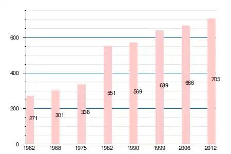 Численность населения коммуны в 2011 году составляла 700 человек[6], а в 2012 году — 705 человек[5].