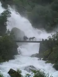 ![]() Ледник (норв. Briksdalsbreen) в национальном парке Юстедалсбреэн привлекает около 300 тысяч туристов в год | |